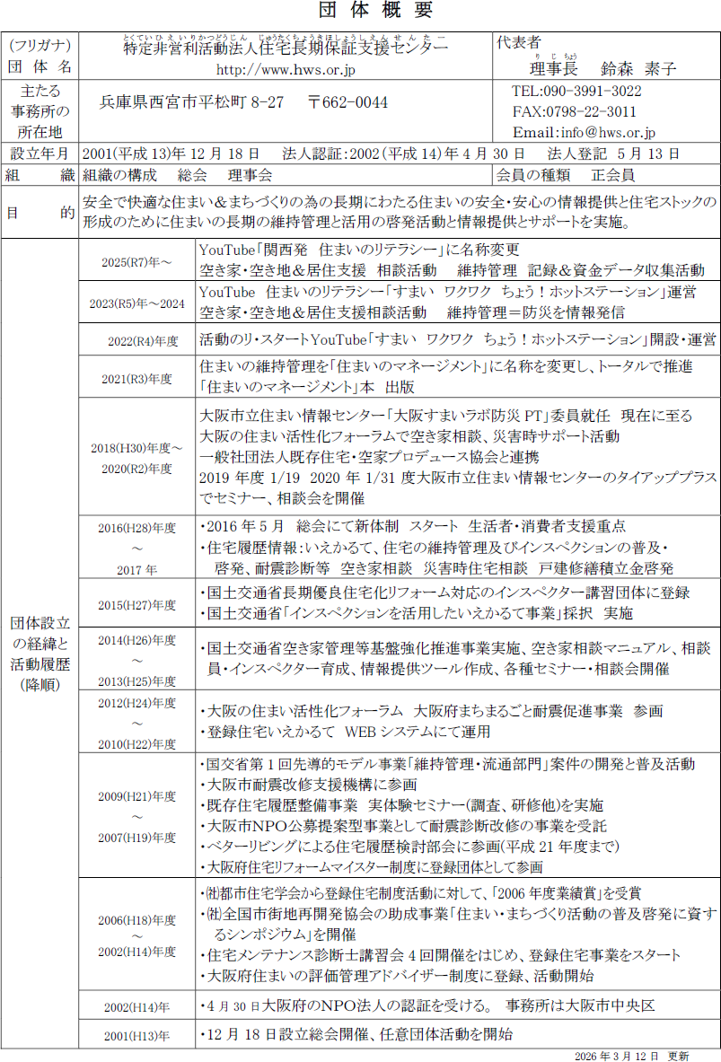 NPO法人住宅長期保証支援センター 団体概要