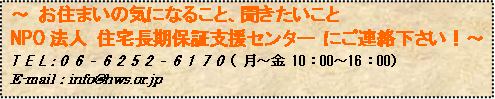 = NPO法人 住宅長期保証支援センターは